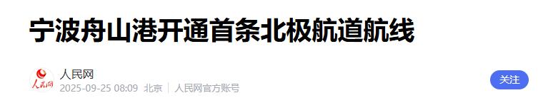 2.《宁波舟山港开通首条北极航道航线》2025-09-25 08:09 | 来源:人民网