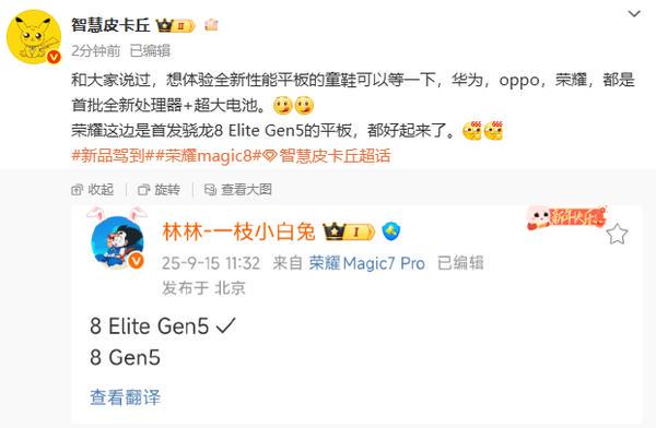【CNMO科技消息】9月16日,有数码博主透露,消费者若希望体验搭载最新旗舰平台的高性能平板电脑,可关注华为、OPPO和即将推出的新品,三者均将首批搭载全新的旗舰处理器,并配备超大容量电池配资开户官网,有望在性能与续航方面实现显著提升。其中,荣耀新款平板将在平板市场全球首发搭载骁龙8 Elite Gen5移动平台。
